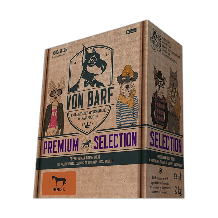 Von BARF tasakaalustamata toortoit koertele Premium Selection Horse – 2 kg - 8x 250 g