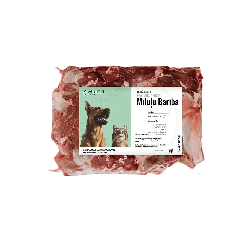 Tasakaalustamata toortoit hirveliha on delikatess, mis sobib igas vanuses koertele ja kassidele. Liha on tükeldatud ja ei sisalda konte. Tükid on vahemikus 50–150g. Suurepärane lisand toortoidule.
